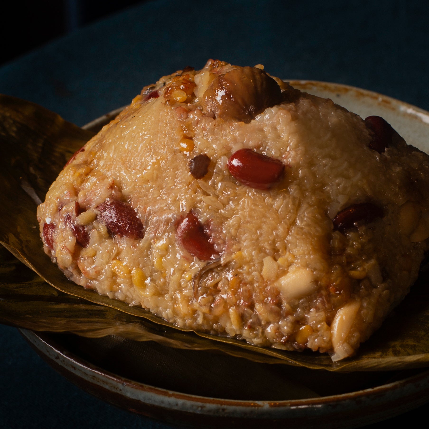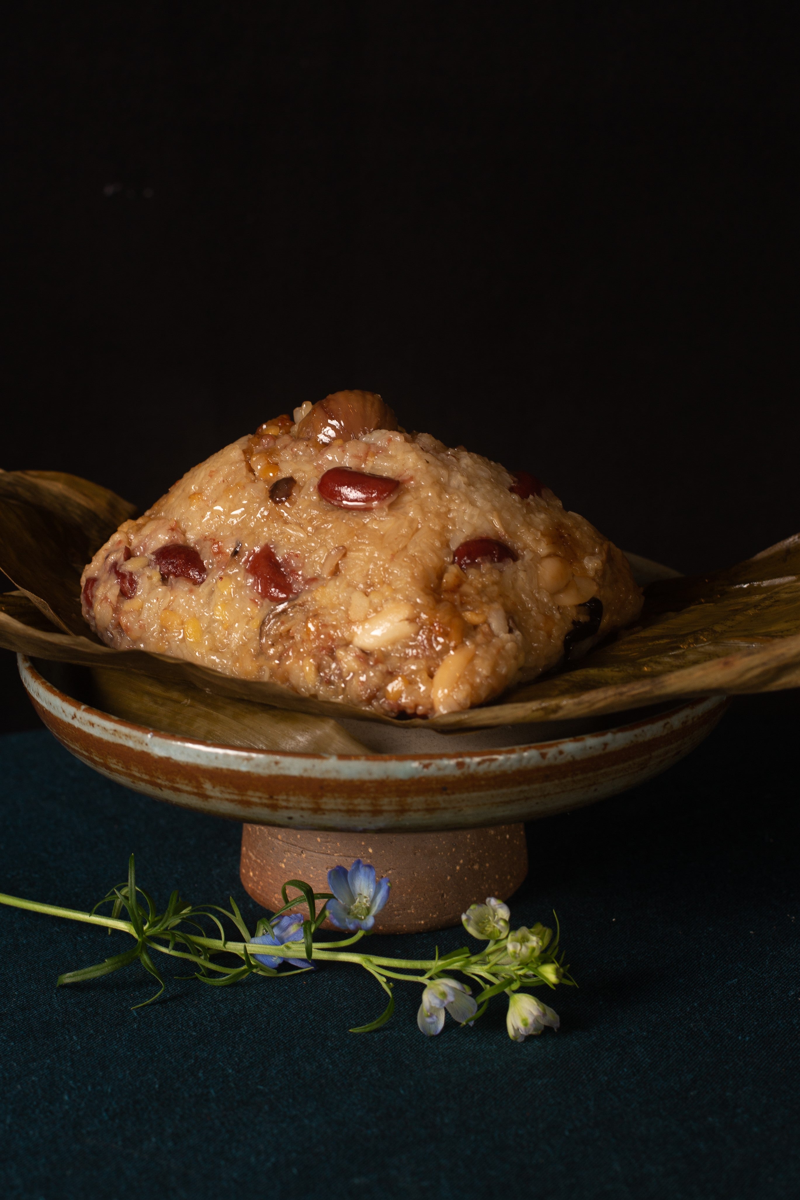 秉承酒店對環境保護的宗旨,「八寶薈萃新豬肉裹蒸糭」由逸東軒行政總廚譚棟師傅匠心研發,除選用全植物性食材「新豬肉」外,更精選花菇、紅腰豆、栗子、花生、蓮子等八寶食材製成,正好和八寶材料相甫相乘,營養豐富,風味和諧。蒸煮後散發淡雅竹葉香,伴隨輕柔豆香,入口清新不膩,絕對是端午節送禮的健康之選。
